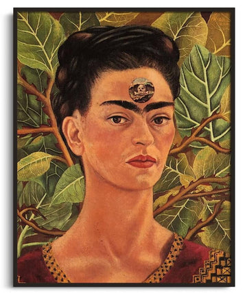 Frida Kahlo is an emblematic figure of twentieth-century Mexican art, known as much for her singular work as for her life marked by physical and emotional pain. Born in 1907 in Coyoacán, a district of Mexico City, she was initially destined for a career in medicine, but a serious bus accident at the age of 18 turned her life upside down. Bedridden for many months, she began to paint to relieve her boredom and express her suffering. This traumatic experience became a recurring theme in her work, which combines autobiography, physical pain and powerful symbolism.