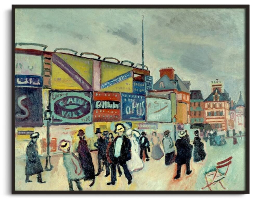This painting belongs to the period when Raoul Dufy was still strongly influenced by the Impressionists and Fauves, while developing his own vision of urban and seaside life. Trouville, a fashionable resort on the Normandy coast, offered him lively street scenes, combining architecture, crowds and modern elements such as advertising.
